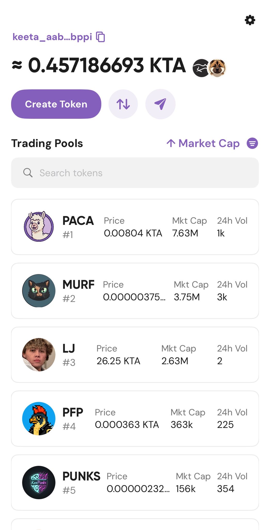 - Displays tokens held at your Keeta wallet address